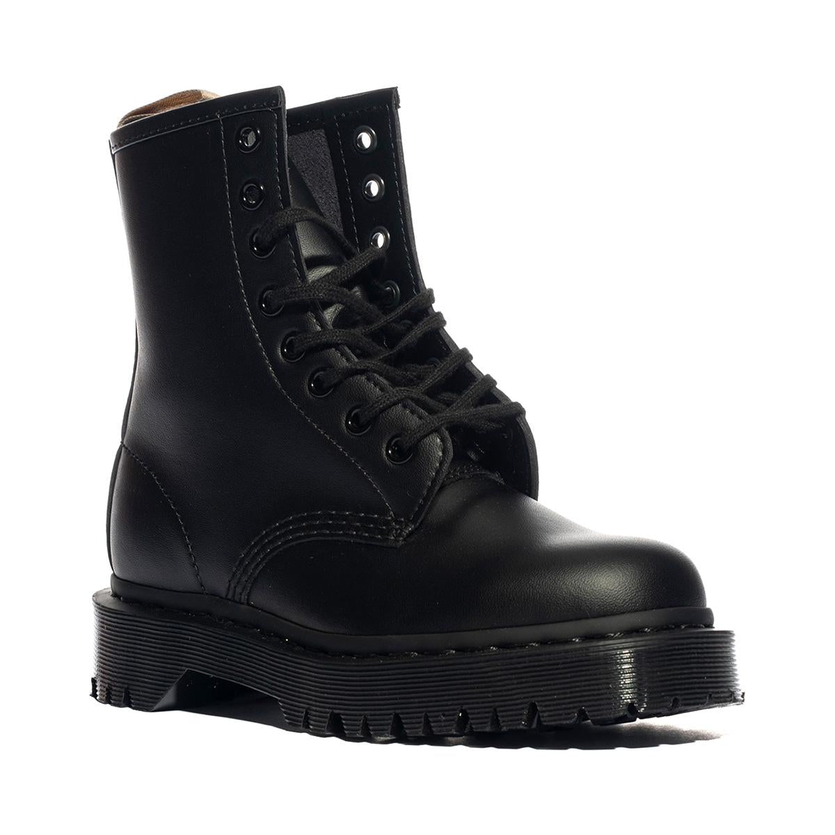 Il classico anfibio unisex 1460 a 8 occhielli è anche 100% vegan.Il Felix Rub Off nero è un materiale sintetico lucidissimo dalla splendida sensazione tattile e da una finitura in due tonalità. Ma l'anfibio rimane sempre un puro esemplare Doc: bordi scanalati, cuciture gialle e la nostra iconica suola con cuscinetto d'aria, resistente a olio e grasso e dotata di ottime proprietà antiabrasione e antiscivolo. E soprattutto, la suola è fissata con uno dei più pregiati sistemi di rinforzo a disposizione: il guardolo Goodyear.v